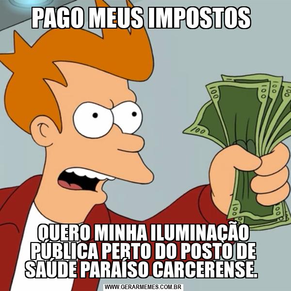 PAGO MEUS IMPOSTOS QUERO MINHA ILUMINAÇÃO PÚBLICA PERTO DO POSTO DE SAÚDE PARAÍSO CARCERENSE.