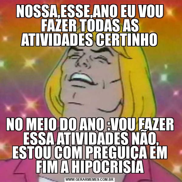 NOSSA,ESSE,ANO EU VOU FAZER TODAS AS ATIVIDADES CERTINHO NO MEIO DO ANO :VOU FAZER ESSA ATIVIDADES NÃO, ESTOU COM PREGUIÇA EM FIM A HIPOCRISIA