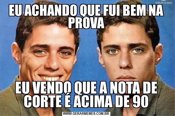EU ACHANDO QUE FUI BEM NA PROVA EU VENDO QUE A NOTA DE CORTE É ACIMA DE 90