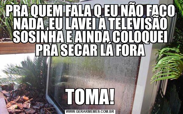 PRA QUEM FALA Q EU NÃO FAÇO NADA ,EU LAVEI A TELEVISÃO SOSINHA E AINDA COLOQUEI PRA SECAR LÁ FORA TOMA!