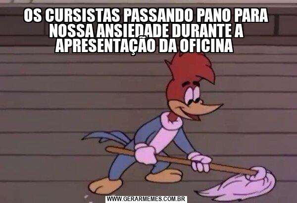 OS CURSISTAS PASSANDO PANO PARA NOSSA ANSIEDADE DURANTE A APRESENTAÇÃO DA OFICINA
