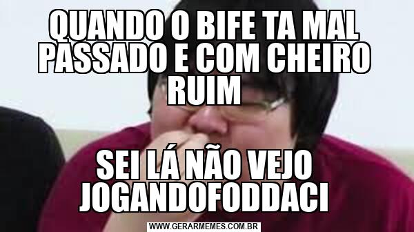 QUANDO O BIFE TA MAL PASSADO E COM CHEIRO RUIM SEI LÁ NÃO VEJO JOGANDOFODDACI
