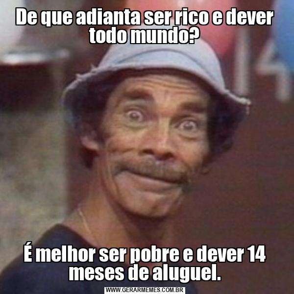 De que adianta ser rico e dever todo mundo? É melhor ser pobre e dever 14 meses de aluguel.