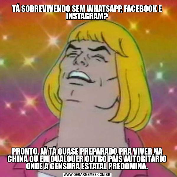 TÁ SOBREVIVENDO SEM WHATSAPP, FACEBOOK E INSTAGRAM? PRONTO. JÁ TÁ QUASE PREPARADO PRA VIVER NA CHINA OU EM QUALQUER OUTRO PAÍS AUTORITÁRIO ONDE A CENSURA ESTATAL PREDOMINA.
