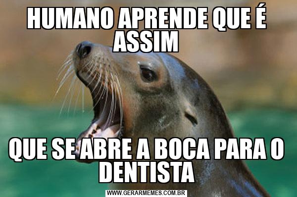 HUMANO APRENDE QUE É ASSIM QUE SE ABRE A BOCA PARA O DENTISTA