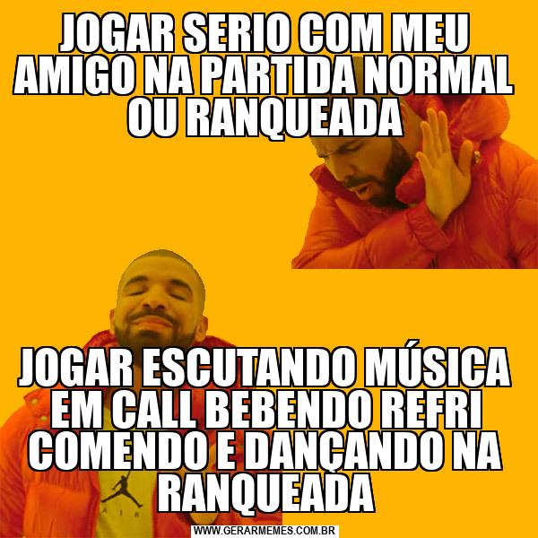 JOGAR SERIO COM MEU AMIGO NA PARTIDA NORMAL OU RANQUEADA JOGAR ESCUTANDO MÚSICA EM CALL BEBENDO REFRI COMENDO E DANÇANDO NA RANQUEADA