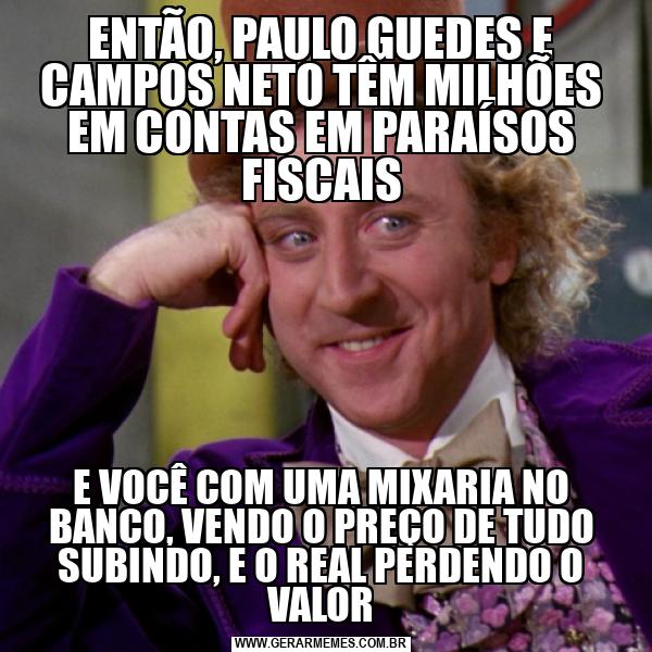 ENTÃO, PAULO GUEDES E CAMPOS NETO TÊM MILHÕES EM CONTAS EM PARAÍSOS FISCAIS E VOCÊ COM UMA MIXARIA NO BANCO, VENDO O PREÇO DE TUDO SUBINDO, E O REAL PERDENDO O VALOR
