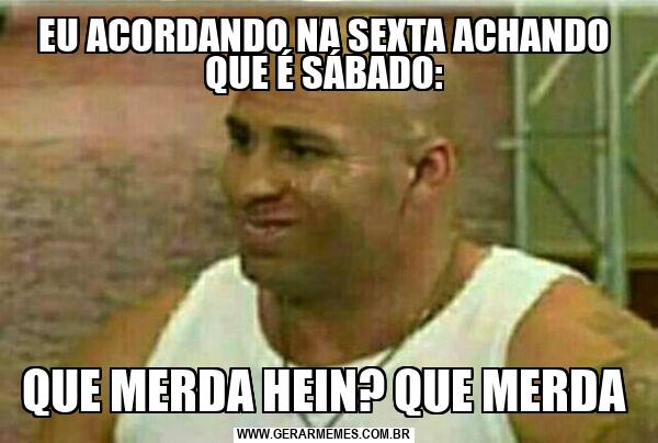 EU ACORDANDO NA SEXTA ACHANDO QUE É SÁBADO: QUE MERDA HEIN? QUE MERDA