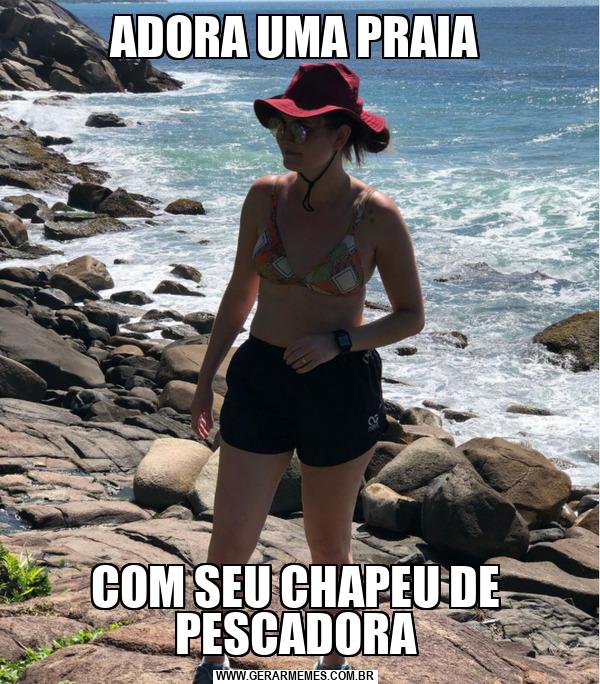 ADORA UMA PRAIA COM SEU CHAPEU DE PESCADORA