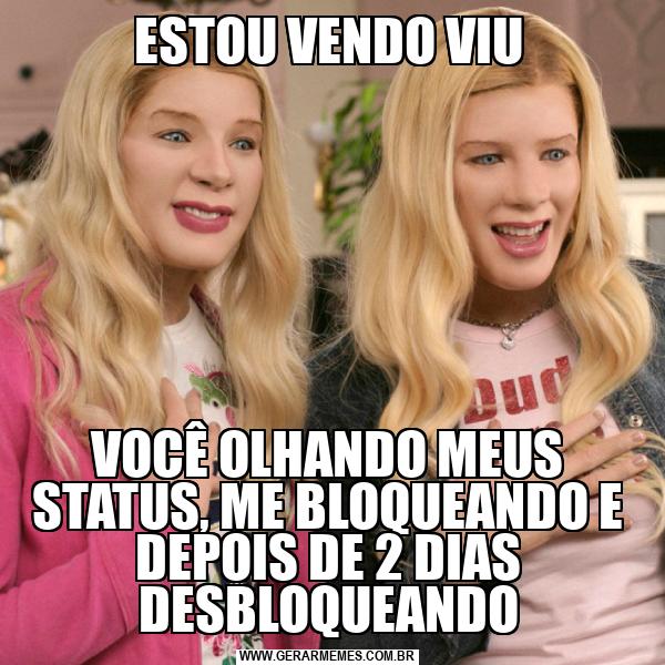 ESTOU VENDO VIU VOCÊ OLHANDO MEUS STATUS, ME BLOQUEANDO E DEPOIS DE 2 DIAS DESBLOQUEANDO