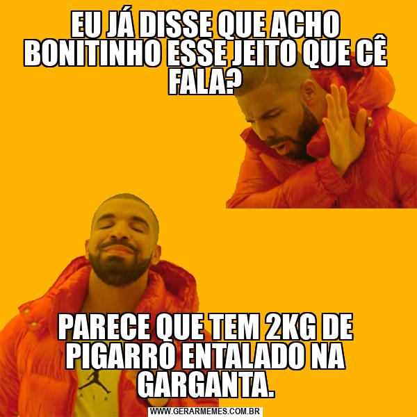 EU JÁ DISSE QUE ACHO BONITINHO ESSE JEITO QUE CÊ FALA? PARECE QUE TEM 2KG DE PIGARRO ENTALADO NA GARGANTA.