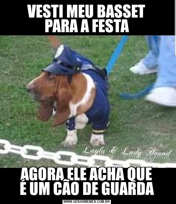 VESTI MEU BASSET PARA A FESTA AGORA ELE ACHA QUE É UM CÃO DE GUARDA