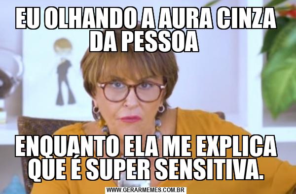 EU OLHANDO A AURA CINZA DA PESSOA ENQUANTO ELA ME EXPLICA QUE É SUPER SENSITIVA.