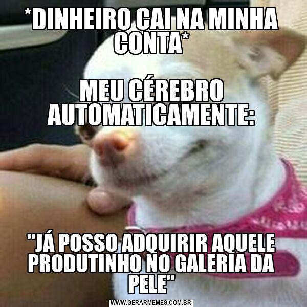 *DINHEIRO CAI NA MINHA CONTA* MEU CÉREBRO AUTOMATICAMENTE: "JÁ POSSO ADQUIRIR AQUELE PRODUTINHO NO GALERIA DA PELE"