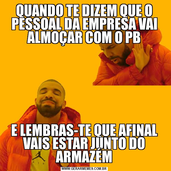 QUANDO TE DIZEM QUE O PESSOAL DA EMPRESA VAI ALMOÇAR COM O PB E LEMBRAS-TE QUE AFINAL VAIS ESTAR JUNTO DO ARMAZÉM