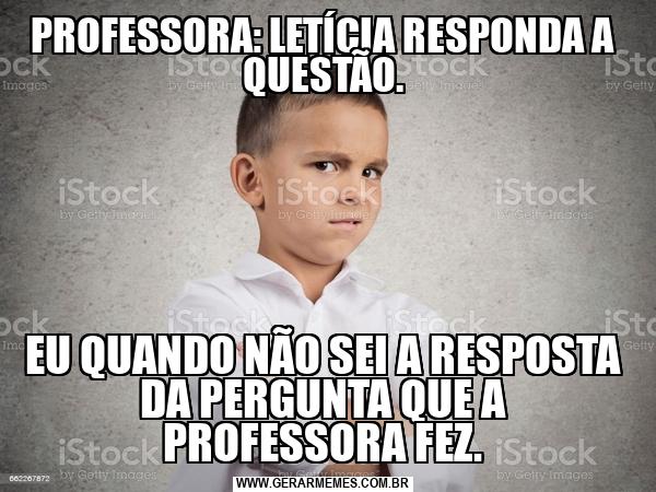 PROFESSORA: LETÍCIA RESPONDA A QUESTÃO. EU QUANDO NÃO SEI A RESPOSTA DA PERGUNTA QUE A PROFESSORA FEZ.