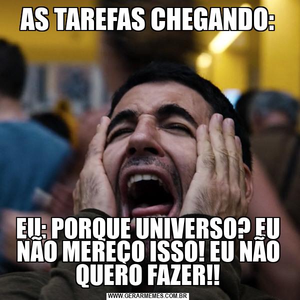 AS TAREFAS CHEGANDO: EU: PORQUE UNIVERSO? EU NÃO MEREÇO ISSO! EU NÃO QUERO FAZER!!