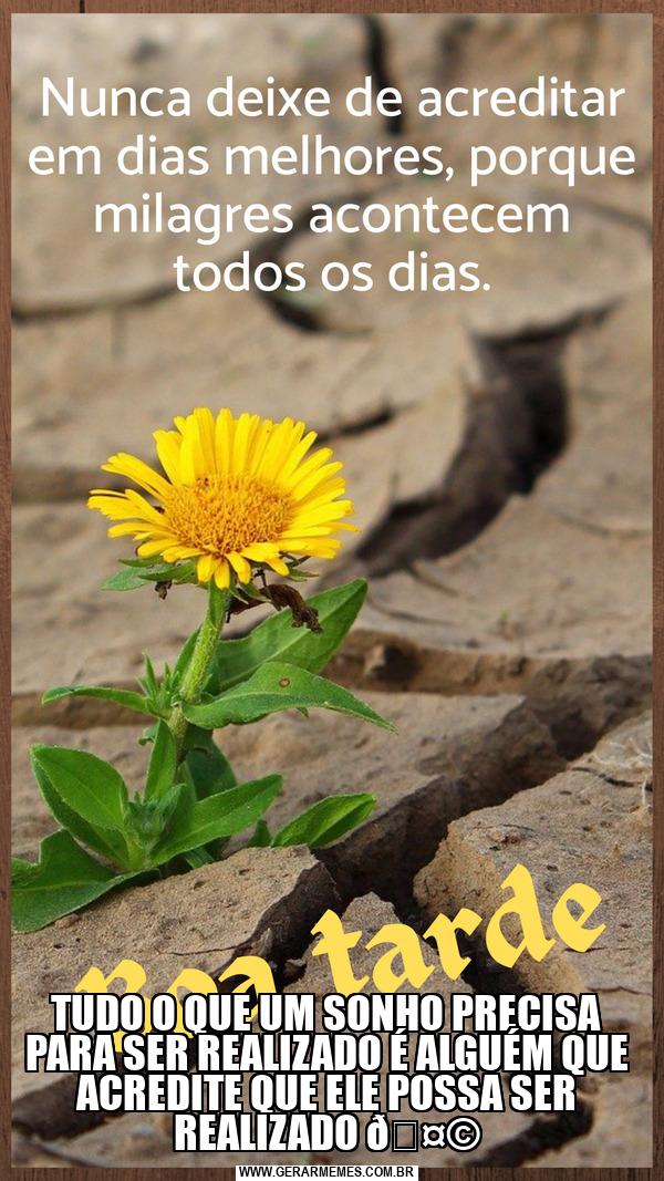 TUDO O QUE UM SONHO PRECISA PARA SER REALIZADO É ALGUÉM QUE ACREDITE QUE ELE POSSA SER REALIZADO