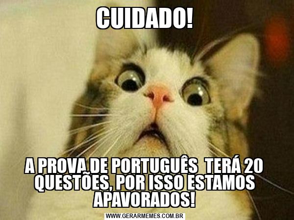 CUIDADO! A PROVA DE PORTUGUÊS TERÁ 20 QUESTÕES, POR ISSO ESTAMOS APAVORADOS!