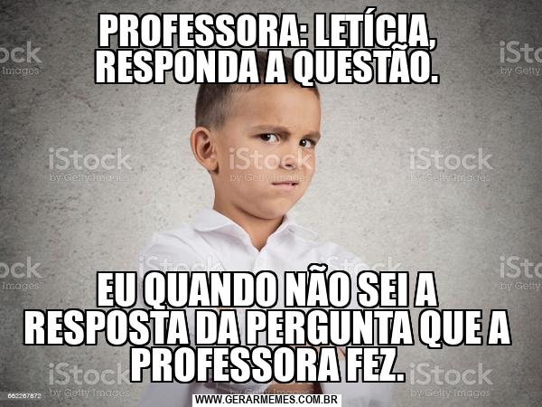 PROFESSORA: LETÍCIA, RESPONDA A QUESTÃO. EU QUANDO NÃO SEI A RESPOSTA DA PERGUNTA QUE A PROFESSORA FEZ.