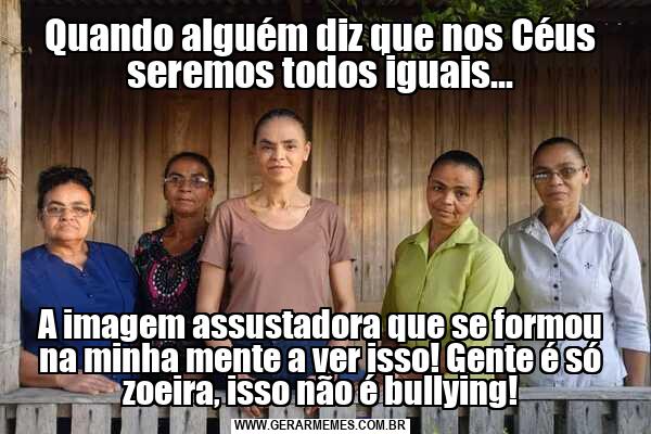 Quando alguém diz que nos Céus seremos todos iguais... A imagem assustadora que se formou na minha mente a ver isso! Gente é só zoeira, isso não é bullying!