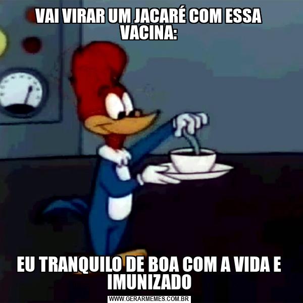 VAI VIRAR UM JACARÉ COM ESSA VACINA: EU TRANQUILO DE BOA COM A VIDA E IMUNIZADO