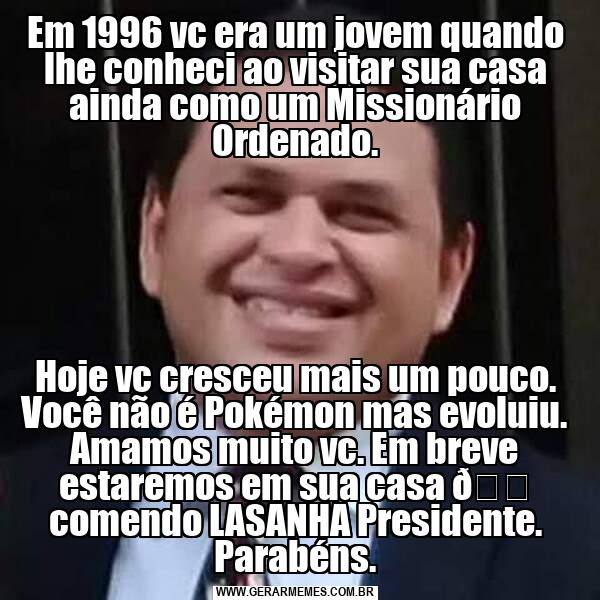 Em 1996 vc era um jovem quando lhe conheci ao visitar sua casa ainda como um Missionário Ordenado. Hoje vc cresceu mais um pouco. Você não é Pokémon mas evoluiu. Amamos muito vc. Em breve estaremos em sua casa
