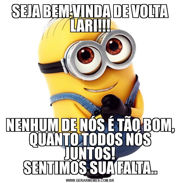 SEJA BEM VINDA DE VOLTA LARI!!! NENHUM DE NÓS É TÃO BOM, QUANTO TODOS NÓS JUNTOS! SENTIMOS SUA FALTA..