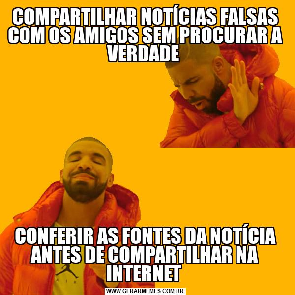 COMPARTILHAR NOTÍCIAS FALSAS COM OS AMIGOS SEM PROCURAR A VERDADE CONFERIR AS FONTES DA NOTÍCIA ANTES DE COMPARTILHAR NA INTERNET
