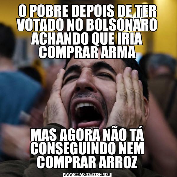 O POBRE DEPOIS DE TER VOTADO NO BOLSONARO ACHANDO QUE IRIA COMPRAR ARMA MAS AGORA NÃO TÁ CONSEGUINDO NEM COMPRAR ARROZ