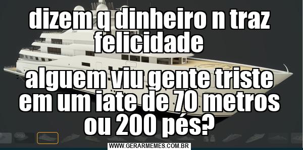 dizem q dinheiro n traz felicidade alguem viu gente triste em um iate de 70 metros ou 200 pés?