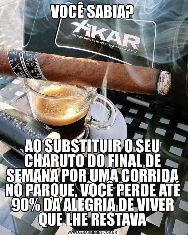VOCÊ SABIA? AO SUBSTITUIR O SEU CHARUTO DO FINAL DE SEMANA POR UMA CORRIDA NO PARQUE, VOCÊ PERDE ATÉ 90% DA ALEGRIA DE VIVER QUE LHE RESTAVA