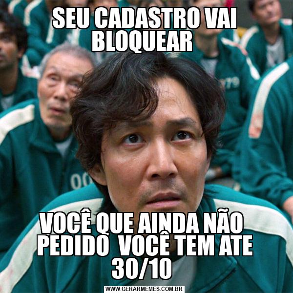 SEU CADASTRO VAI BLOQUEAR VOCÊ QUE AINDA NÃO PEDIDO VOCÊ TEM ATE 30/10