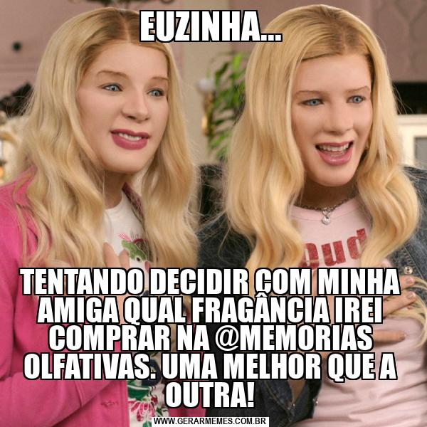 EUZINHA... TENTANDO DECIDIR COM MINHA AMIGA QUAL FRAGÂNCIA IREI COMPRAR NA @MEMORIAS OLFATIVAS. UMA MELHOR QUE A OUTRA!
