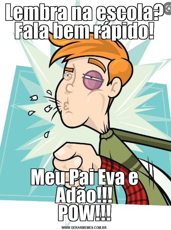 Lembra na escola? Fala bem rápido! Meu Pai Eva e Adão!!! POW!!!