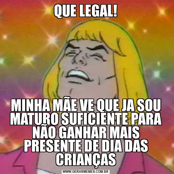 QUE LEGAL! MINHA MÃE VE QUE JA SOU MATURO SUFICIENTE PARA NÃO GANHAR MAIS PRESENTE DE DIA DAS CRIANÇAS