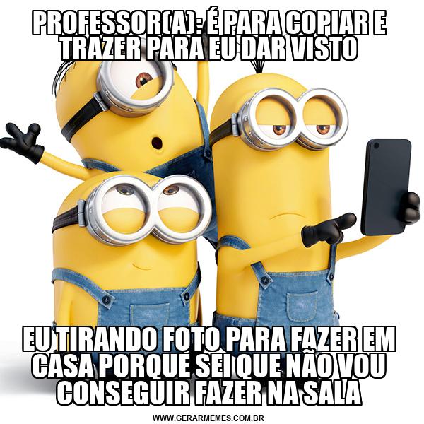 PROFESSOR(A): É PARA COPIAR E TRAZER PARA EU DAR VISTO EU TIRANDO FOTO PARA FAZER EM CASA PORQUE SEI QUE NÃO VOU CONSEGUIR FAZER NA SALA