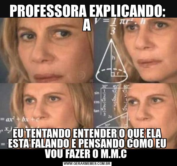 PROFESSORA EXPLICANDO: A EU TENTANDO ENTENDER O QUE ELA ESTA FALANDO E PENSANDO COMO EU VOU FAZER O M.M.C