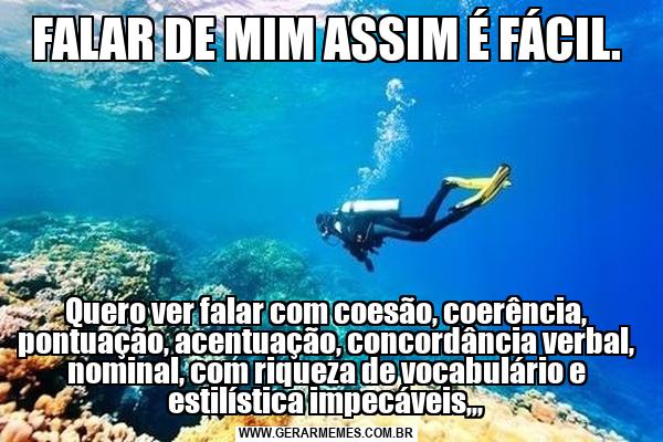 FALAR DE MIM ASSIM É FÁCIL. Quero ver falar com coesão, coerência, pontuação, acentuação, concordância verbal, nominal, com riqueza de vocabulário e estilística impecáveis,,,