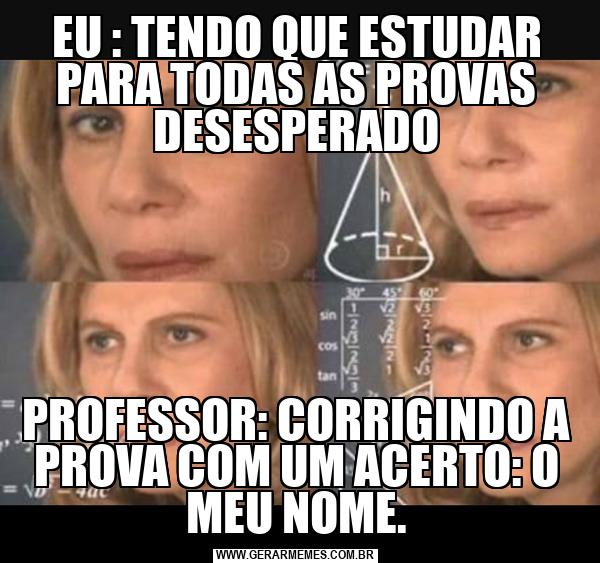 EU : TENDO QUE ESTUDAR PARA TODAS AS PROVAS DESESPERADO PROFESSOR: CORRIGINDO A PROVA COM UM ACERTO: O MEU NOME.