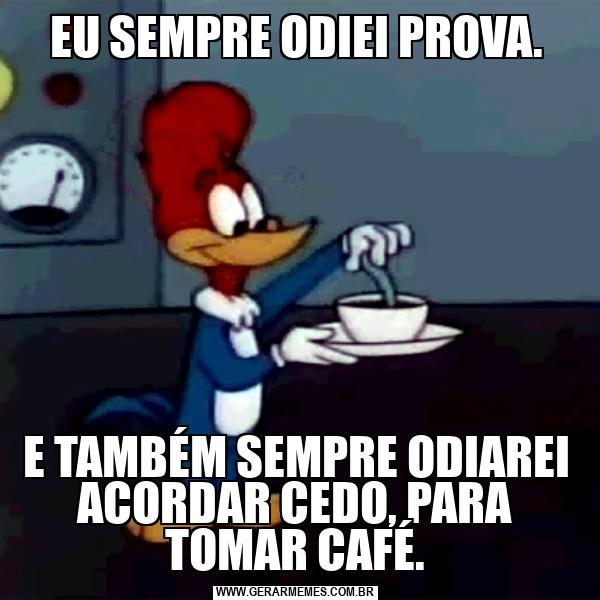 EU SEMPRE ODIEI PROVA. E TAMBÉM SEMPRE ODIAREI ACORDAR CEDO, PARA TOMAR CAFÉ.