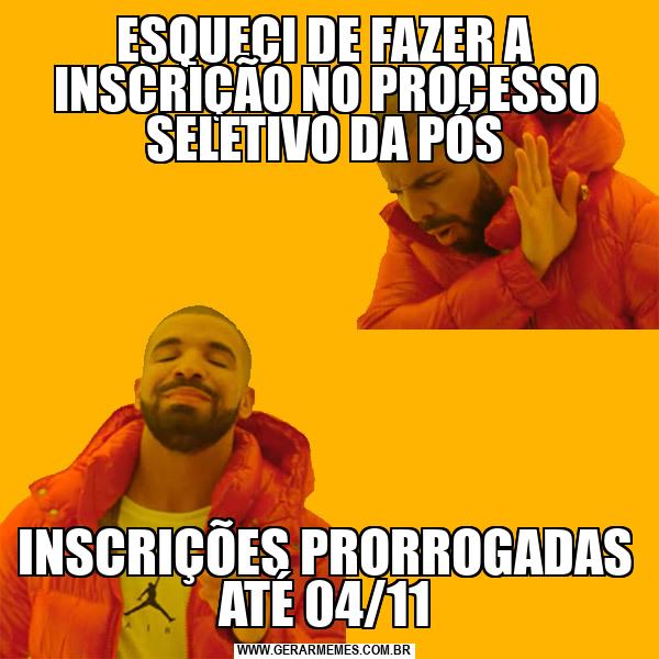 ESQUECI DE FAZER A INSCRIÇÃO NO PROCESSO SELETIVO DA PÓS INSCRIÇÕES PRORROGADAS ATÉ 04/11