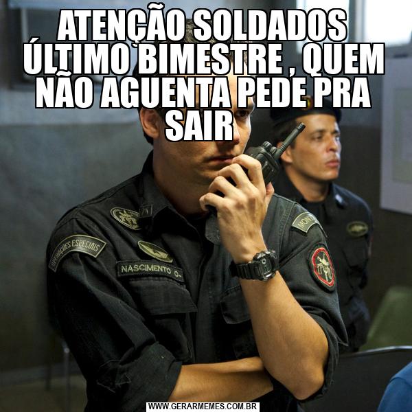 ATENÇÃO SOLDADOS ÚLTIMO BIMESTRE , QUEM NÃO AGUENTA PEDE PRA SAIR