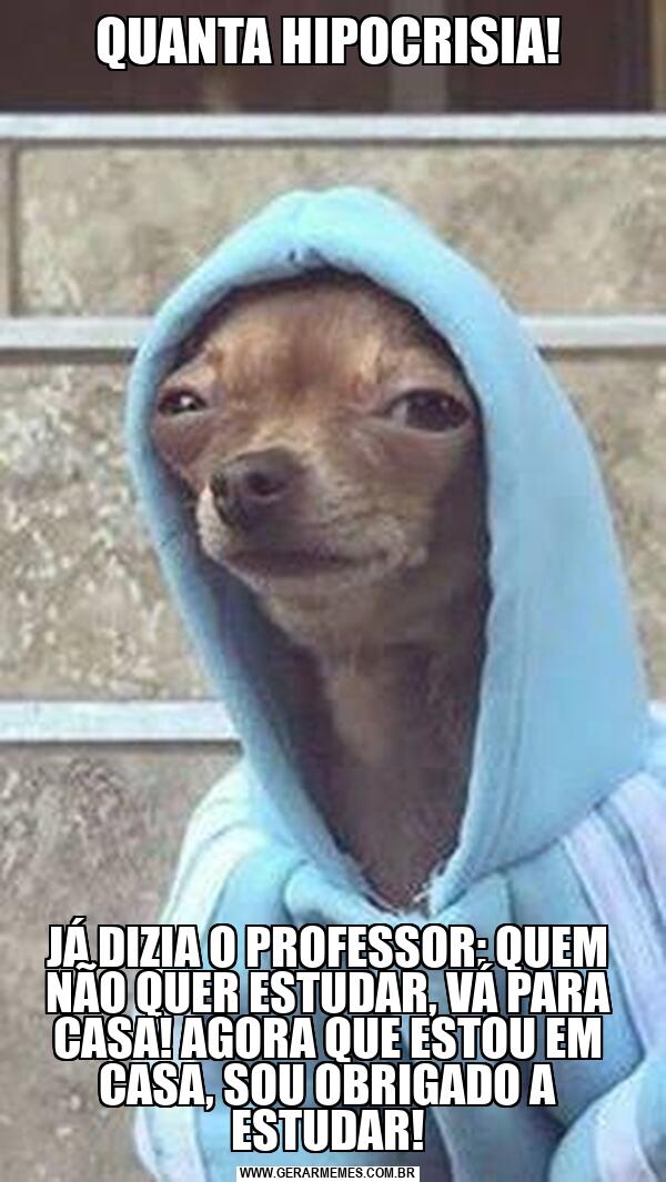 QUANTA HIPOCRISIA! JÁ DIZIA O PROFESSOR: QUEM NÃO QUER ESTUDAR, VÁ PARA CASA! AGORA QUE ESTOU EM CASA, SOU OBRIGADO A ESTUDAR!