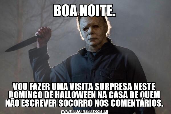BOA NOITE. VOU FAZER UMA VISITA SURPRESA NESTE DOMINGO DE HALLOWEEN NA CASA DE QUEM NÃO ESCREVER SOCORRO NOS COMENTÁRIOS.