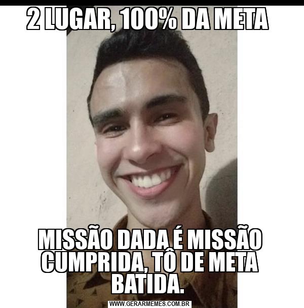 2 LUGAR, 100% DA META MISSÃO DADA É MISSÃO CUMPRIDA, TÔ DE META BATIDA.