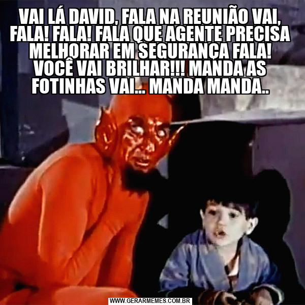 VAI LÁ DAVID, FALA NA REUNIÃO VAI, FALA! FALA! FALA QUE AGENTE PRECISA MELHORAR EM SEGURANÇA FALA! VOCÊ VAI BRILHAR!!! MANDA AS FOTINHAS VAI… MANDA MANDA..