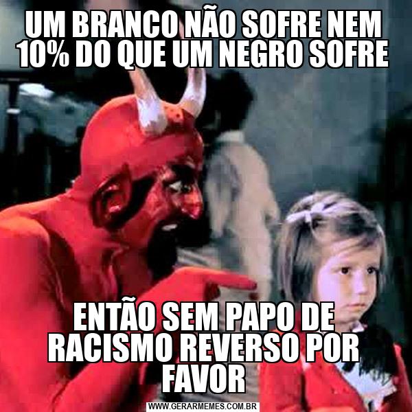 UM BRANCO NÃO SOFRE NEM 10% DO QUE UM NEGRO SOFRE ENTÃO SEM PAPO DE RACISMO REVERSO POR FAVOR