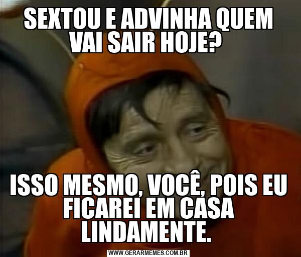 SEXTOU E ADVINHA QUEM VAI SAIR HOJE? ISSO MESMO, VOCÊ, POIS EU FICAREI EM CASA LINDAMENTE.
