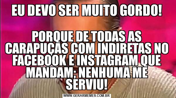 EU DEVO SER MUITO GORDO! PORQUE DE TODAS AS CARAPUÇAS COM INDIRETAS NO FACEBOOK E INSTAGRAM QUE MANDAM; NENHUMA ME SERVIU!